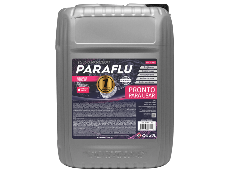 PARAFLU Montadora Orgânico possui a tecnologia orgânica Long Life OAT (Organic Acid Tecnology) que aumenta a vida útil do motor lubrificando a bomba d’água, a válvula termostática, evitando o ressecamento das mangueiras e protegendo contra a corrosão todos os tipos de motores. Sua formulação eleva o ponto de ebulição e reduz o ponto de congelamento, protegendo também contra o superaquecimento, congelamento, além de proteger contra a cavitação e não atacar os sensores eletrônicos. Possui propriedade antiespumante e anti-incrustante. Quando utilizado corretamente com água desmineralizada, protege por até 4 anos ou 120.000km.